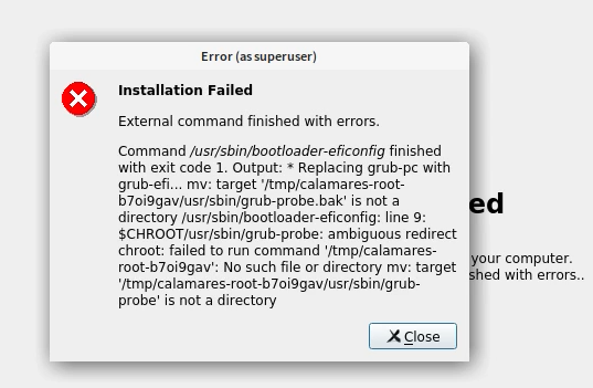 [22:21: 6] <kannan[m]1> it asked me to manually mount efi partition and i did it on /boot/efi