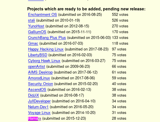 [12:07: 6] <kannan[m]1> i see hamara linux is ready to be added on distrowatch.com, but pending for new release. i think mailing them about the latest release might get an entry about hamara on distrowatch d